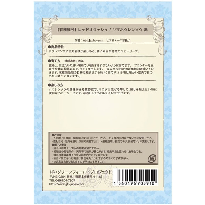 有機種子 レッドオラッシュ ヤマホウレンソウ