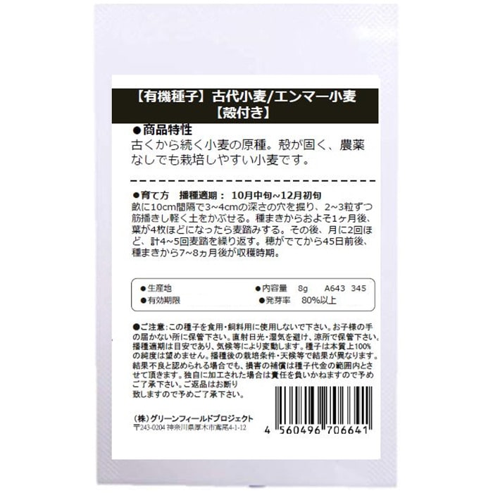 化学農薬・化学肥料なし、化学種子消毒なし、遺伝子組み換えなしの有機種子です。