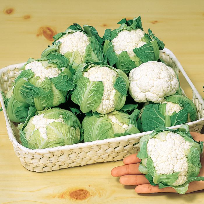 暑さに極めて強いので、春まき初夏どり向き。葉が花蕾を包み込むように育つため、花蕾はきめが細かく純白です。