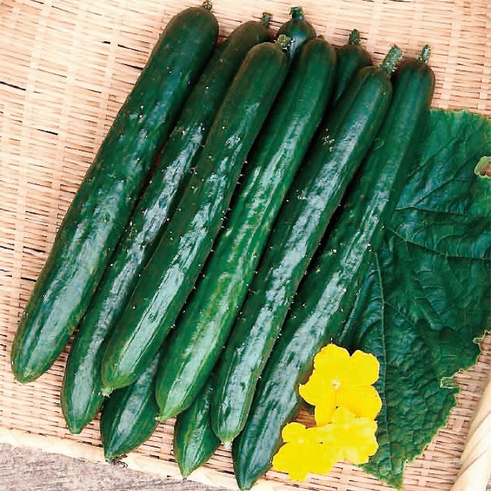 生育が非常に旺盛で、長期間果実が付く品種です。果実は濃緑色で、光沢があり曲がりは少ないです。たくさんとれて、食味は歯切れがよく、甘みがあるおいしいキュウリです。