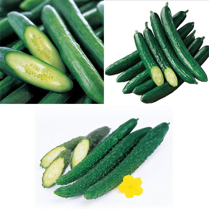 長い期間とれておいしい「ずーっととれる」、いぼがなく食味に優れた「フリーダム」、香りと食感が楽しめる「味さんご」のセットです。