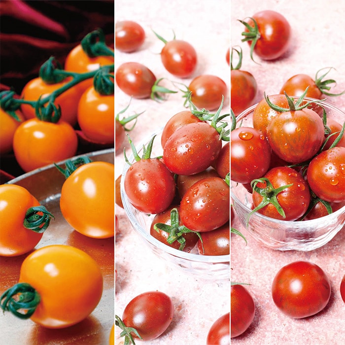 ミニトマトで味にこだわった「メイクスイーツ」シリーズ。その中でも人気の3種を厳選してお届けします。収穫時期がそろうので、食べ比べて楽しむことができます。