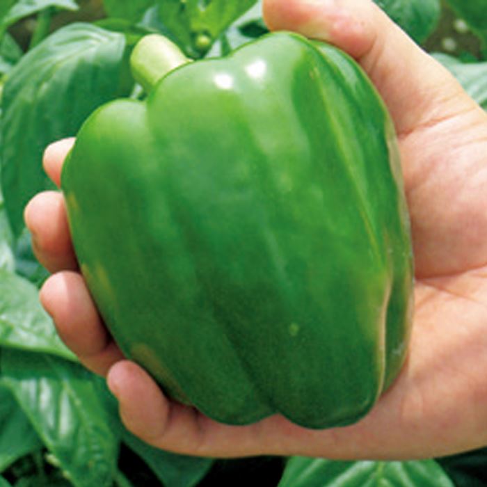 ソフトボール大のビッグサイズのピーマン。苦みが少なく、肉厚で甘みたっぷり。株が丈夫に育つので栽培も簡単です。