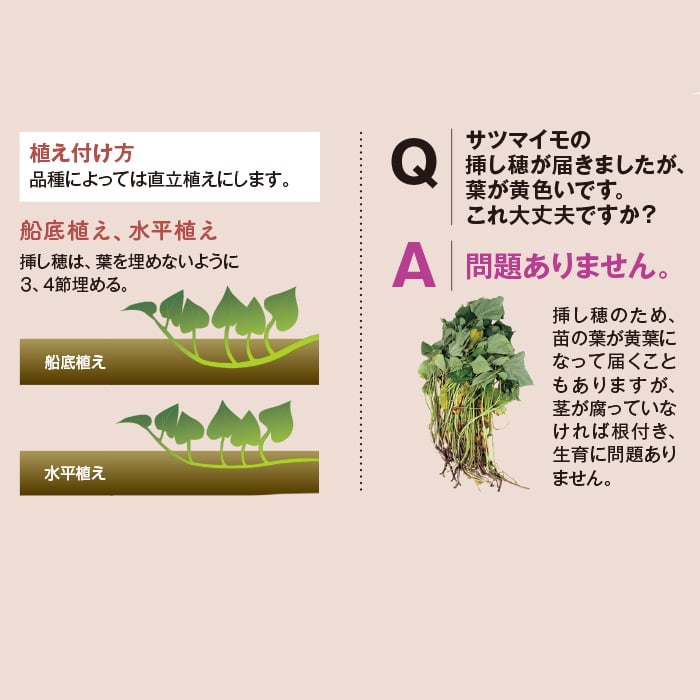※到着時に苗の葉が黄色くなっていることがありますが、茎が腐っていなければ根付き、生育に問題ありませんのでそのまま植え付けてください。