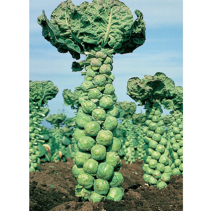 太く伸びた茎にびっしりと球が付く芽キャベツ。良質の球が無駄なくとれる早生種です。球のしまりも非常によく、形もとてもよく育ちます。かわいらしさを生かして、丸ごとシチューやグラタンにどうぞ。