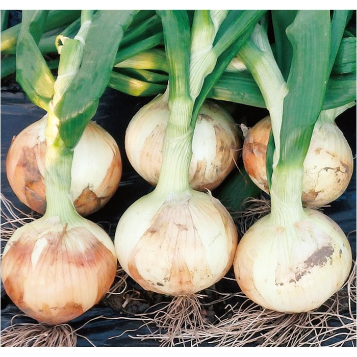 早どりできる早生種です。歯切れよく甘くみずみずしいおいしいタマネギです。球重300g程度にもなり、太りよくたくさんとれて、8月末まで貯蔵ができます(適切な環境で貯蔵した場合)。