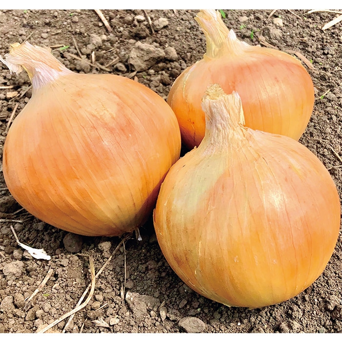 病気に強く作りやすい中生種。歯切れよく甘みの強いおいしいタマネギです。球重350g程度にもなり、太りよくたくさんとれて年末まで貯蔵ができます。