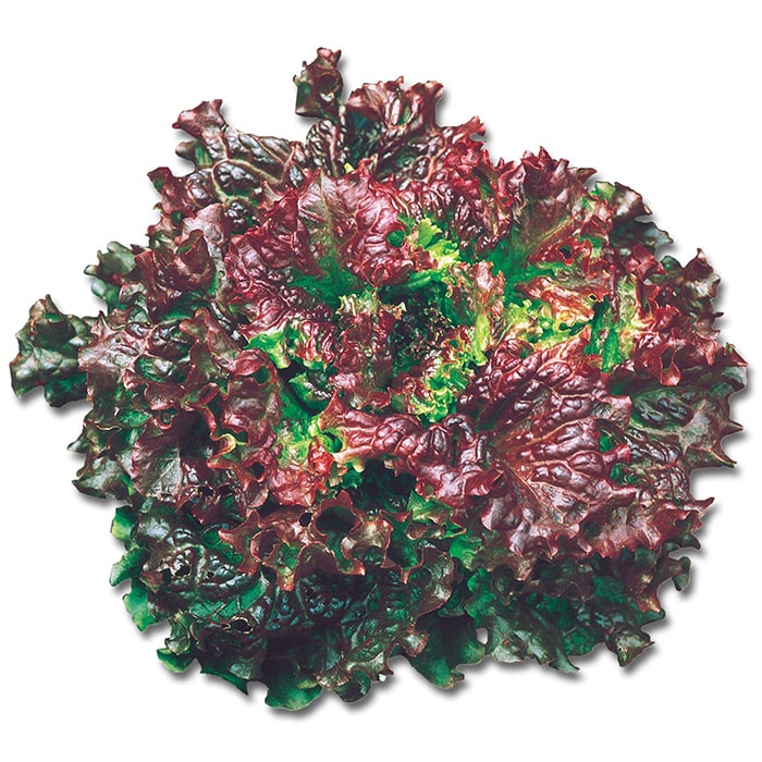 葉緑が赤褐色を帯びて縮れます。作りやすく家庭菜園に向いています。寒さに当たると赤褐色が濃くなり、苦みのない、柔らかくておいしいレタスになります。サラダや料理の添え物として利用します。