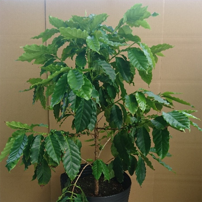 多く普及されているアラビカ種で、「ブルーマウンテン」、「モカ」、「キリマンジャロ」のような代表的な銘柄にも使われています。わい性種で管理がしやすく、実ができるまではグリーンリーフとして楽しめます。