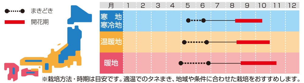 ※高温時は花色が変化しやすく、花付きが悪くなります。