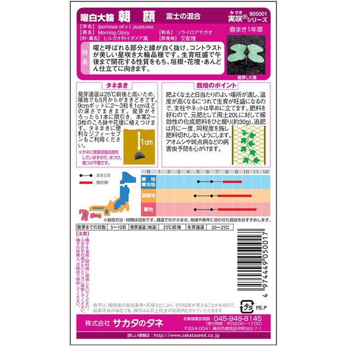 アサガオは太陽が昇るのにつれて花がしおれ始め、晴天だとお昼までにはしぼんでしまいますが、「富士」シリーズは昼過ぎまで咲きます!