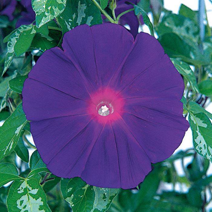 超巨大輪。葉に斑が入ります。つるがあまり伸びないので、あんどん仕立てや鉢植えでトレリスにもおすすめです。