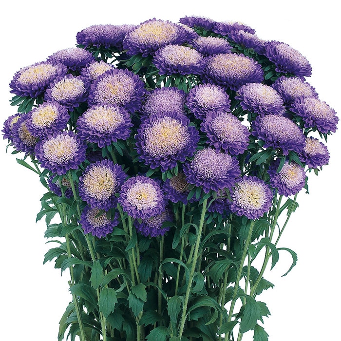 花弁の重ねが厚くボリュームたっぷりの大輪アスター。花形の整ったポンポン咲きで、咲き進みながら表情を変えます。「松本」シリーズと同程度の萎凋病耐病性品種です。「松本」シリーズより5~7日開花が遅いです。