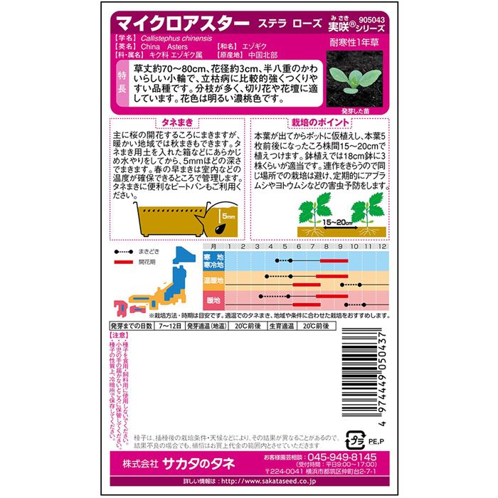 小ぶりでキュートな半八重咲きのアスター。ピンチ(摘芯)をしなくても自然と枝分かれして、花をたくさん咲かせます。庭や鉢で楽しむほか、切り花やアレンジメントなどにもおすすめです。