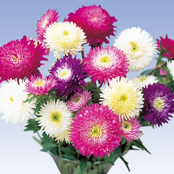 ダリアのように花弁が管状になるユニークな花。ボリューム満点の大輪種で、発色の美しい花色混合です。