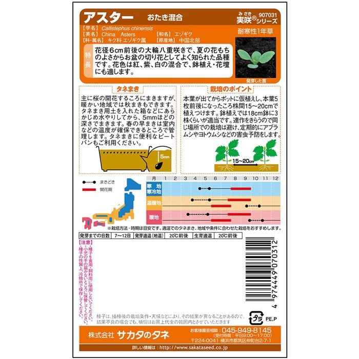 ※タネの粒数(粒の大きさ)は採種条件などにより差があります。表示の粒数は目安としてください。