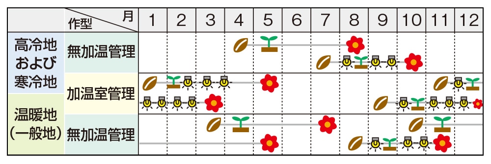 性質が強いため、促成、抑制栽培も容易で、電照栽培でさまざまな作型での出荷が可能です。強光線下でも退色しない花色です。