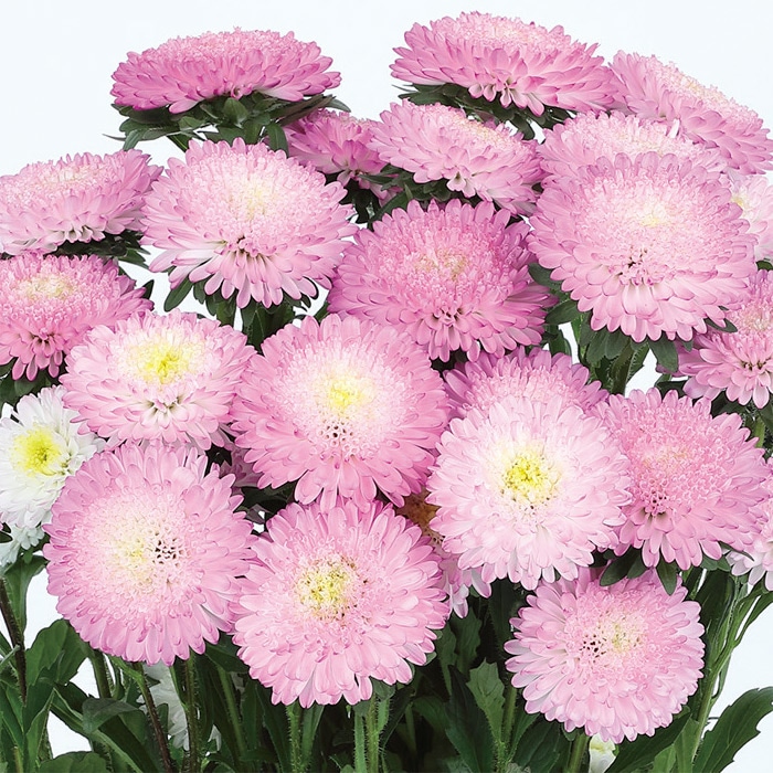 花弁の重ねが厚くボリュームたっぷりの大輪。花形の整ったポンポン咲きで、咲き進みながら表情を変えます。「松本」シリーズと同程度の萎凋病耐病性品種です。「松本」シリーズより5~7日開花が遅いです。