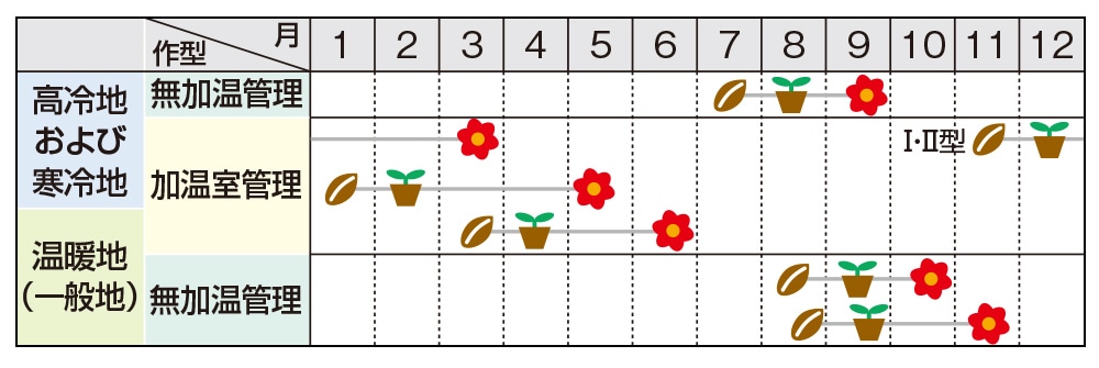 ・花芽分化期の極端な高温や低温で、奇形花が発生する場合がありますので注意してください。