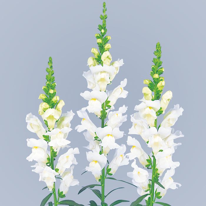 花壇用のポット苗出荷に好適で、大きめのポットによる開花株での出荷がおすすめです。草丈約60cmで、分枝性がよく、花穂が大きいため見栄えがよいです。切り花用の苗としても出荷可能で、ニーハイ(膝丈)ガーデンでは花壇を立体的に演出します。白色。
