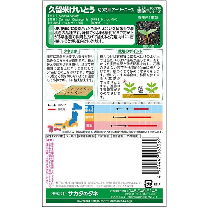 緑軸でタネまき後約70日で花が上がる早生種で、株間を広げて植えると花壇向きに、密植にすると切り花向きになります。