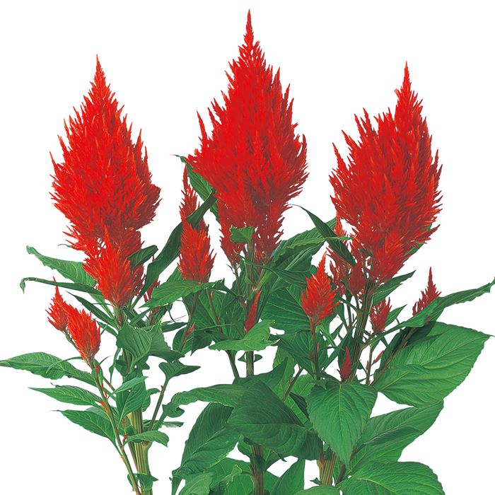中高性羽毛ケイトウ。花穂が極めて大きくボリュームがあるのが特徴です。花壇、切り花に好適です。緋赤色の明るい花色です。