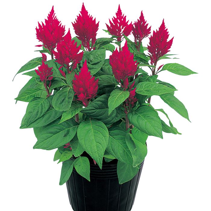 わい性羽毛ケイトウ。草丈10cmで出穂開始し、花穂は草丈の半分を占めるほどの大きさになり非常に見事です。生育がよく、自然に側枝が地際から発生し、耐暑性が強く、長期間美しい色彩を保ちます。赤桃色です。