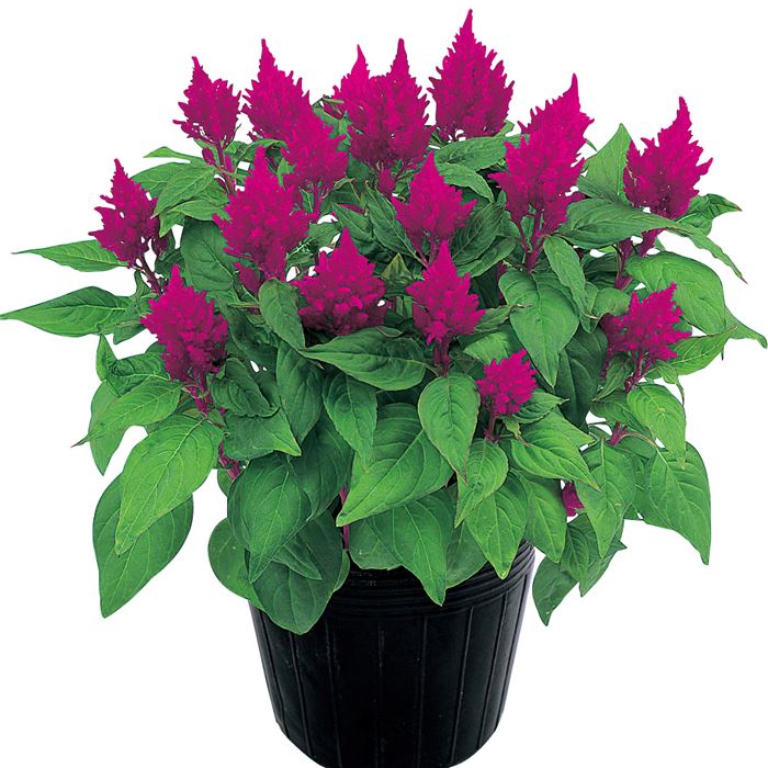 わい性羽毛ケイトウ。草丈10cmで出穂開始し、花穂は草丈の半分を占めるほどの大きさになり非常に見事です。生育がよく、自然に側枝が地際から発生し、耐暑性が強く、長期間美しい色彩を保ちます。濃桃色です。