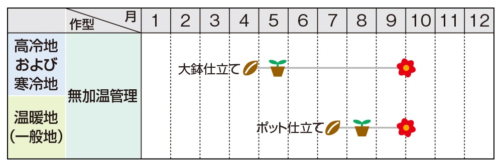 窒素肥料分が多い環境では、茎が扁平(へんぺい)になったり、花冠の形が崩れたりすることがあるので注意してください。カリウムをしっかり効かせての栽培がポイントです。
