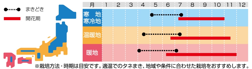 極早咲き種。草丈が低く、よく分枝して、霜が降りるころまで咲き続けます。