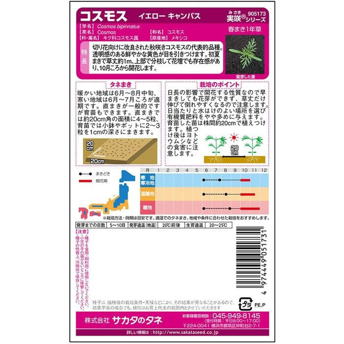 切り花向けに改良された秋咲きコスモスの代表的品種。10月ごろから開花します。