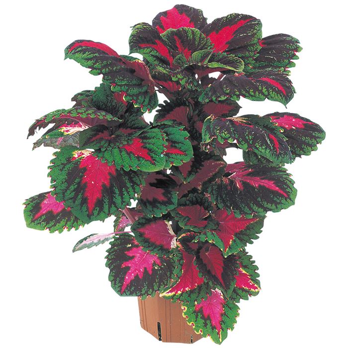 大きな葉と草姿が自慢の品種です。既存の実生系品種の倍以上はある葉、草姿は見ごたえがあり花壇、コンテナガーデンに好適です。花壇では100cm程度の株にまで成長します。葉の縁は濃い緑色、中央は濃い桃色、中間部は赤紫色。