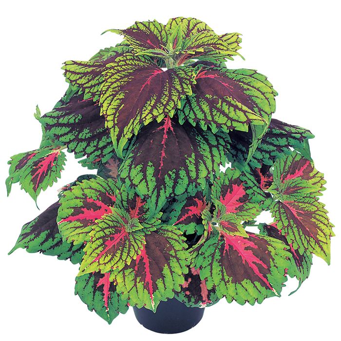 大きな葉と草姿が自慢の品種です。既存の実生系品種の倍以上はある葉、草姿は見ごたえがあり花壇、コンテナガーデンに好適です。花壇では100cm程度の株にまで成長します。葉の縁は緑色、中央は橙桃色、中間部は濃い緑色。生育が進むにつれてサーモンピンクの発色が鮮やかになります。