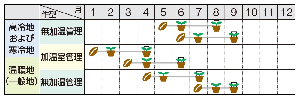 ●短日開花性のため、極端な早まきは早期出蕾の原因になります。