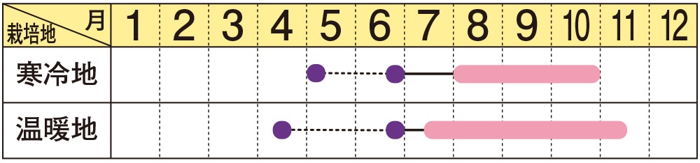 赤紫色の花弁は濃く、がく片が淡い、二色咲きを思わせるユニークな花色と濃い葉色のコントラストが目を引く品種です。早咲きの花はやや上向きで密に付き、花壇や鉢植えに適します。