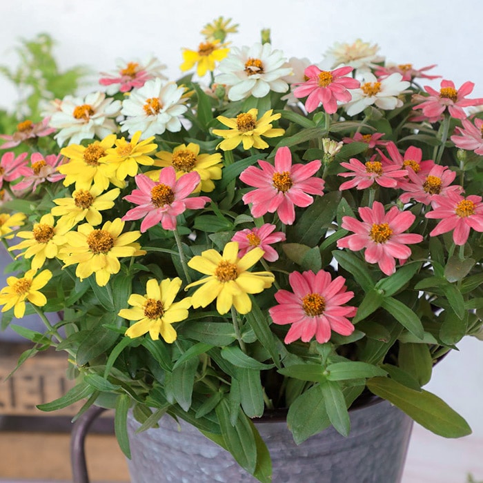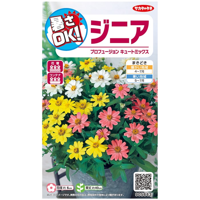 丈夫で病気に強く、夏から秋まで咲き続けます。「レモン」「コーラルピンク」「ダブル ホワイト」の3色混合です。