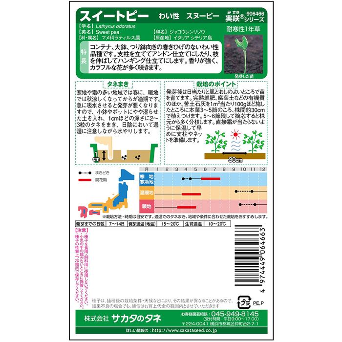 コンテナ、大鉢、つり鉢向きの巻きひげのないわい性品種です。