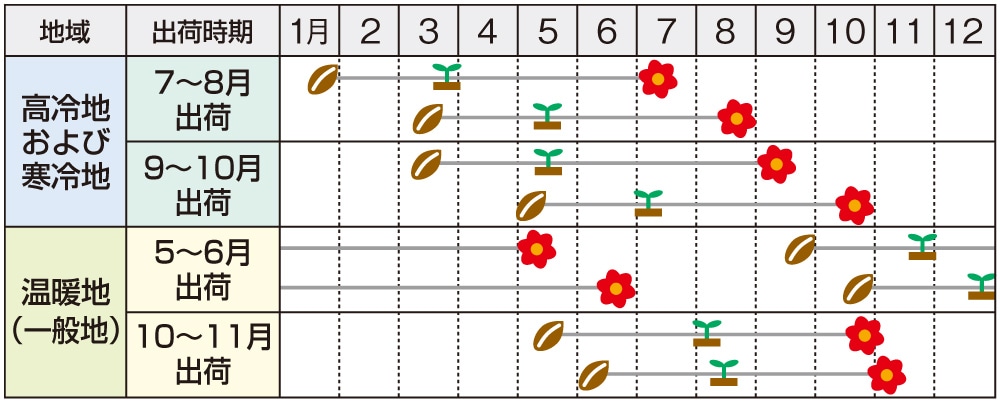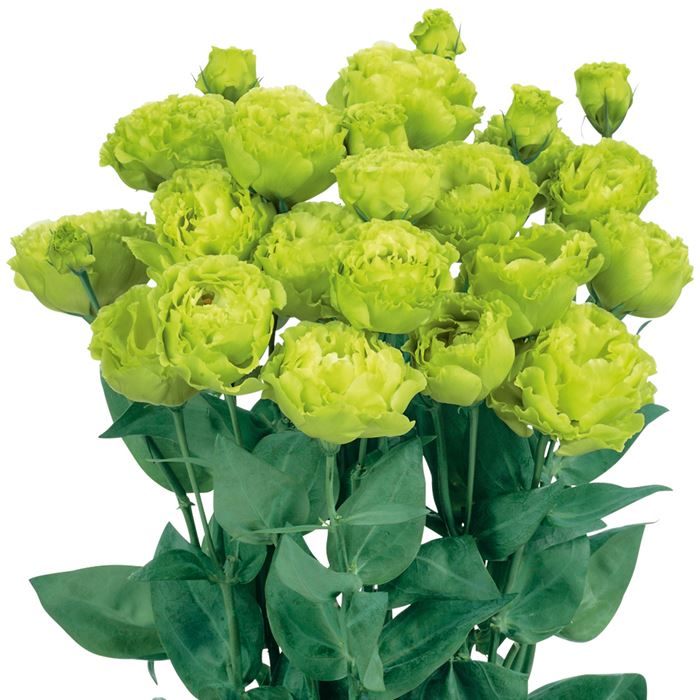 育種家の佐瀬昇氏とサカタのタネの共同開発種。花弁の輝きと硬さ、花持ちの良さが特徴です。中輪八重咲き変形雌ずいタイプの光沢のある濃いグリーン。中生系なので春~夏だけでなく秋出荷にも向く品種。20%内でイエロー八重咲き通常花が出現します。作型としては周年栽培可能です。冬季栽培ではブラスチングに注意してください。