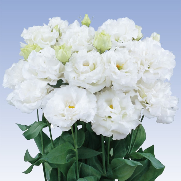 花が大きく、フリルがきれいです。大輪仕立ての栽培に向きます。温暖地の11月から年内および春先出荷、寒冷地の季咲き出荷がおすすめです。