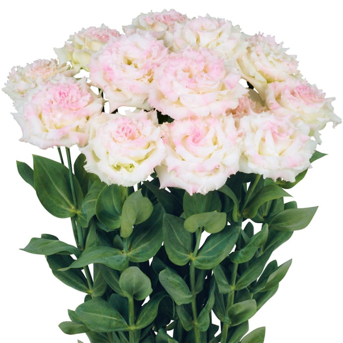 白地にほのかなピンクの花色がかわいらしいです。発色には適度な温度と日照が必要です。ハカマの発生に注意します。温暖地・寒冷地と共に季咲き出荷がおすすめです。