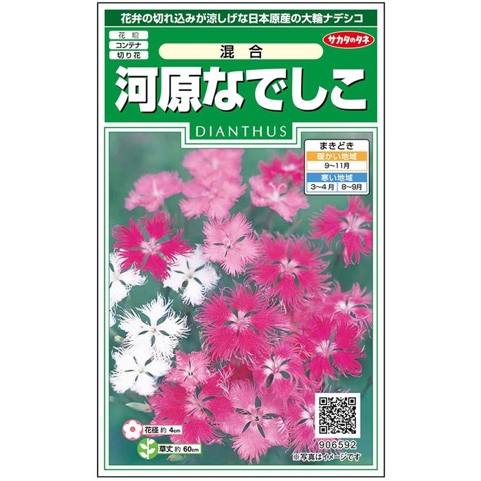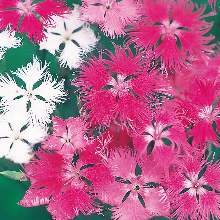 株元から分枝し、先端に切れ込みのある大輪の花が数輪つきます。濃淡のあるピンクと白の混合です。