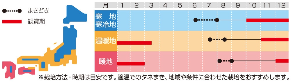 ※暖冬などの影響で気温が高い場合、発色が遅れたり、一度発色してもその後の高温で色戻りしたりする場合があります。