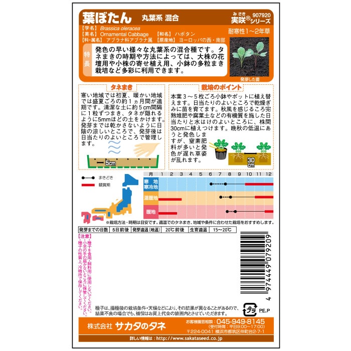 発色の早い、さまざまな丸葉系の混合種です。タネまきの時期や方法によっては、大株の花壇用や小株の寄せ植え用、小鉢の多粒まき栽培など多彩に利用できます。