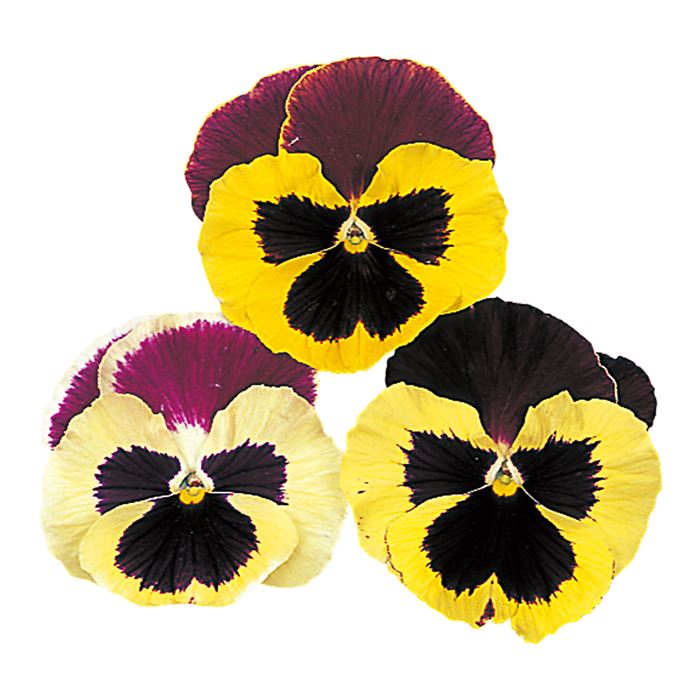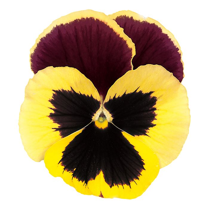 高温長日下でもコンパクトな草姿の大輪系パンジー。花径約8cmで、シリーズ全体の生育や開花がそろいます。斜め上向きに開花するため、出荷トレーでの見栄えもよく、低温短日期の開花力も備えています。