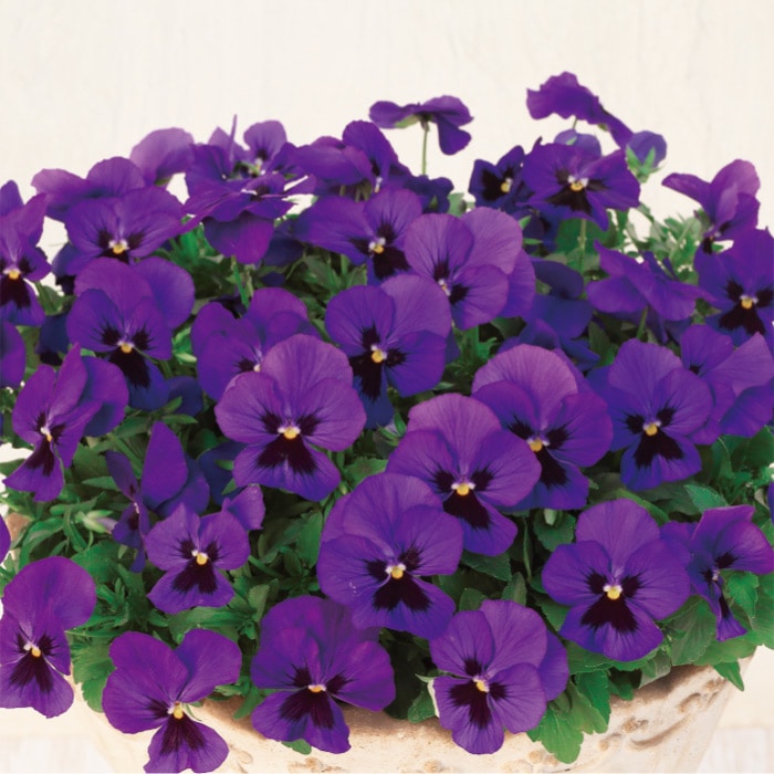 名前の通りよく咲き、花盛りのガーデンを長期にわたって楽しむことができます。ビオラの性質を受け継ぎ、花付きや株張りも抜群です。「よく咲くスミレ」の明るい花色は、寒い季節の庭を華やかに彩ります。