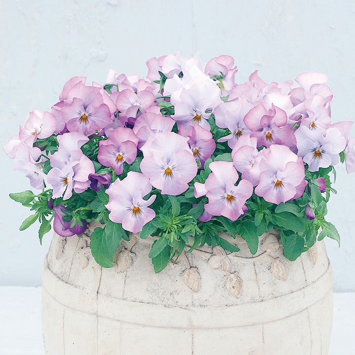 名前の通りよく咲き、花盛りのガーデンを長期にわたって楽しむことができます。ビオラの性質を受け継ぎ、花付きや株張りも抜群です。「よく咲くスミレ」の明るい花色は、寒い季節の庭を華やかに彩ります。