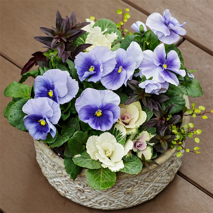 寄せ植え素材:キンギョソウ、ハボタン、ワイヤープランツ