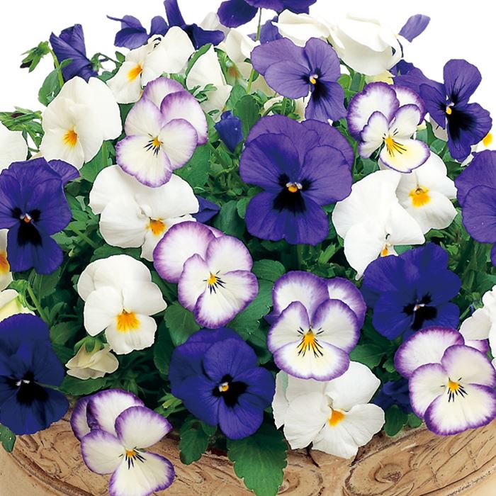大人気の「虹色スミレ」と「よく咲くスミレ」の優しくカラフルなカラーコーディネート。タネをまくだけでナチュラルな寄せ植え風に。