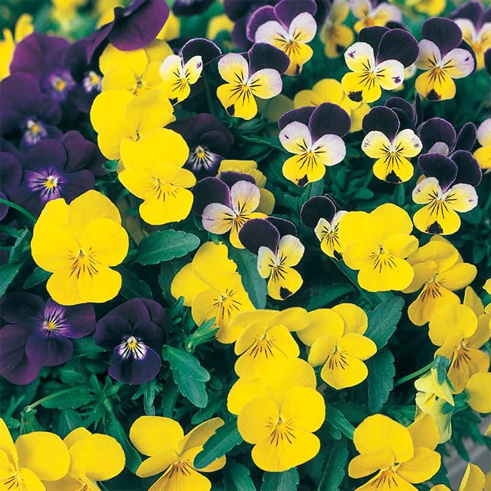 生育旺盛で寒さに強く、作りやすいビオラです。こんもり盛り上がった草姿に、花径約2~3cmの黄色や青色などの花が咲き、春先から晩春までお庭を彩ります。