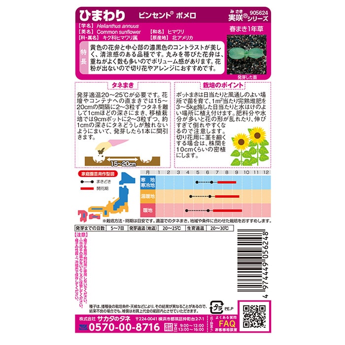 「ビンセント」シリーズは無花粉なので切り花やアレンジにおすすめ。発芽がよく、生育がそろい、上向きに花が咲くのが特徴です。日の長さに左右されないので地域を問わず栽培できます。